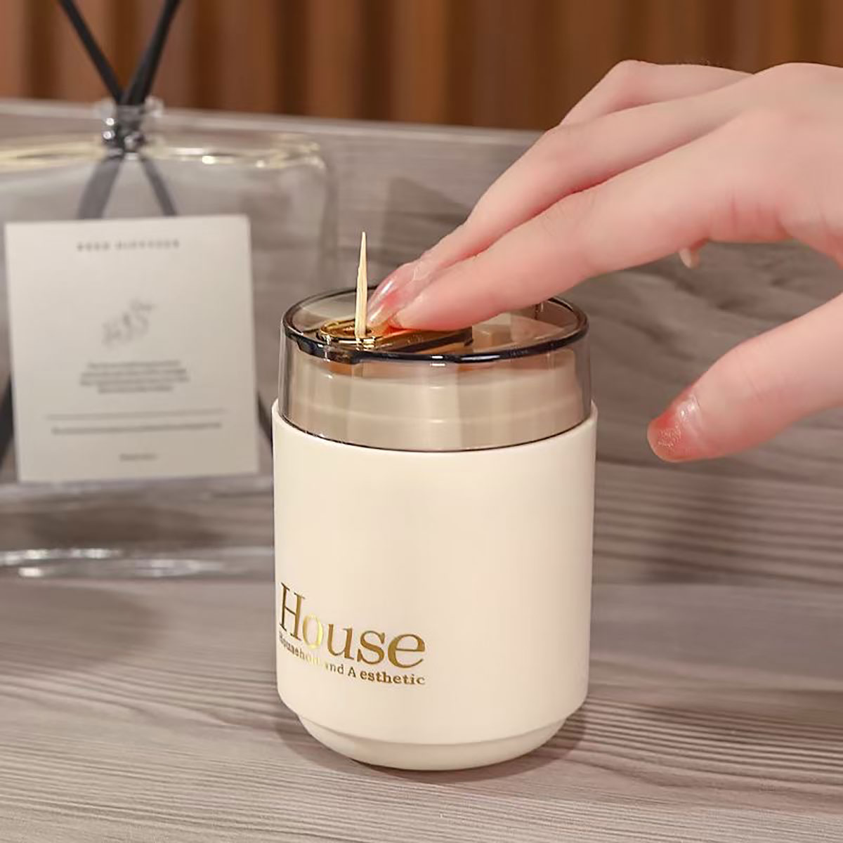 奶油風(fēng)自動(dòng)牙簽筒