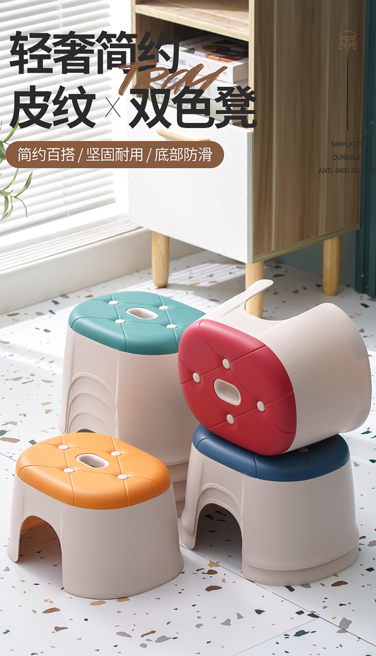 皮紋雙色凳小號/大號