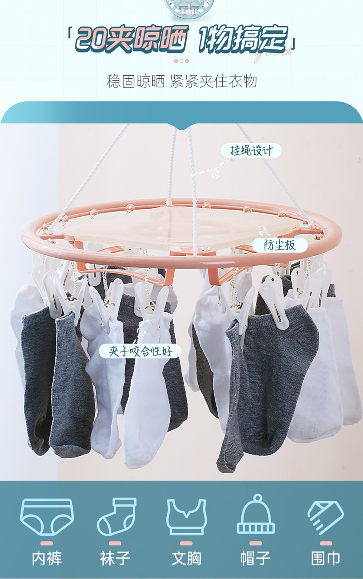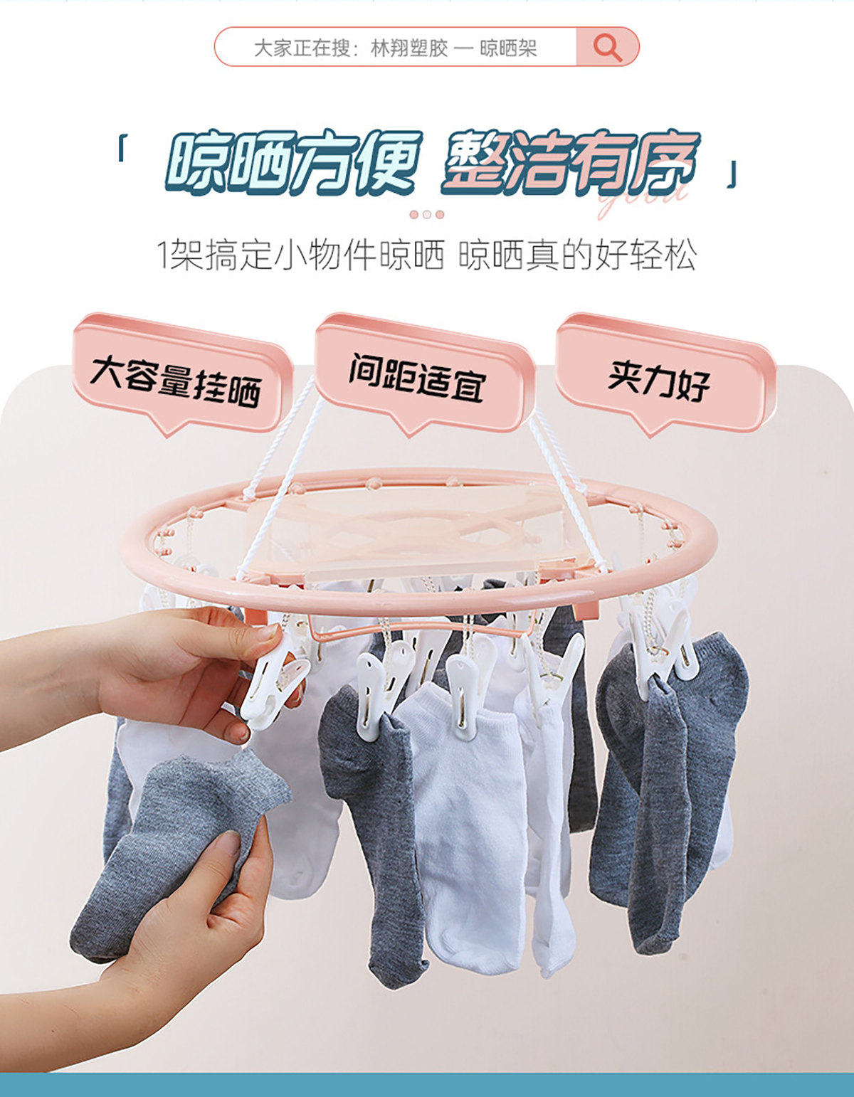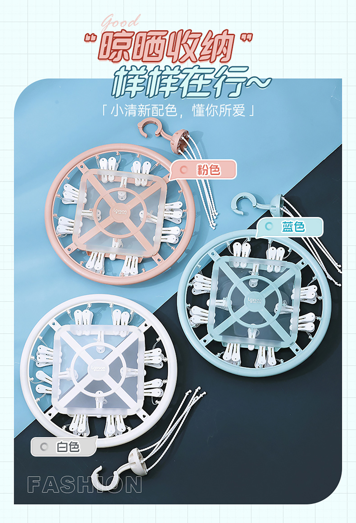 亮彩(掛桿)圓形20夾晾衣架 2023年新色