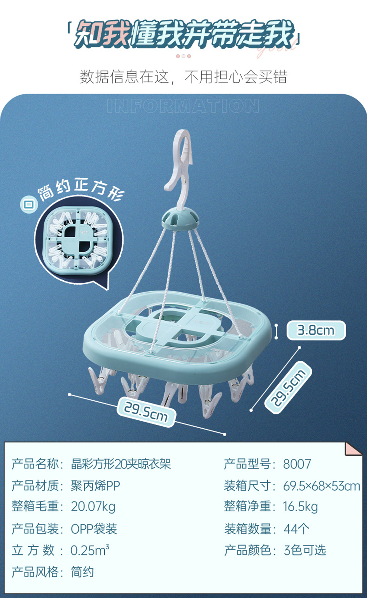 晶彩方形20夾晾衣架 2023年新色