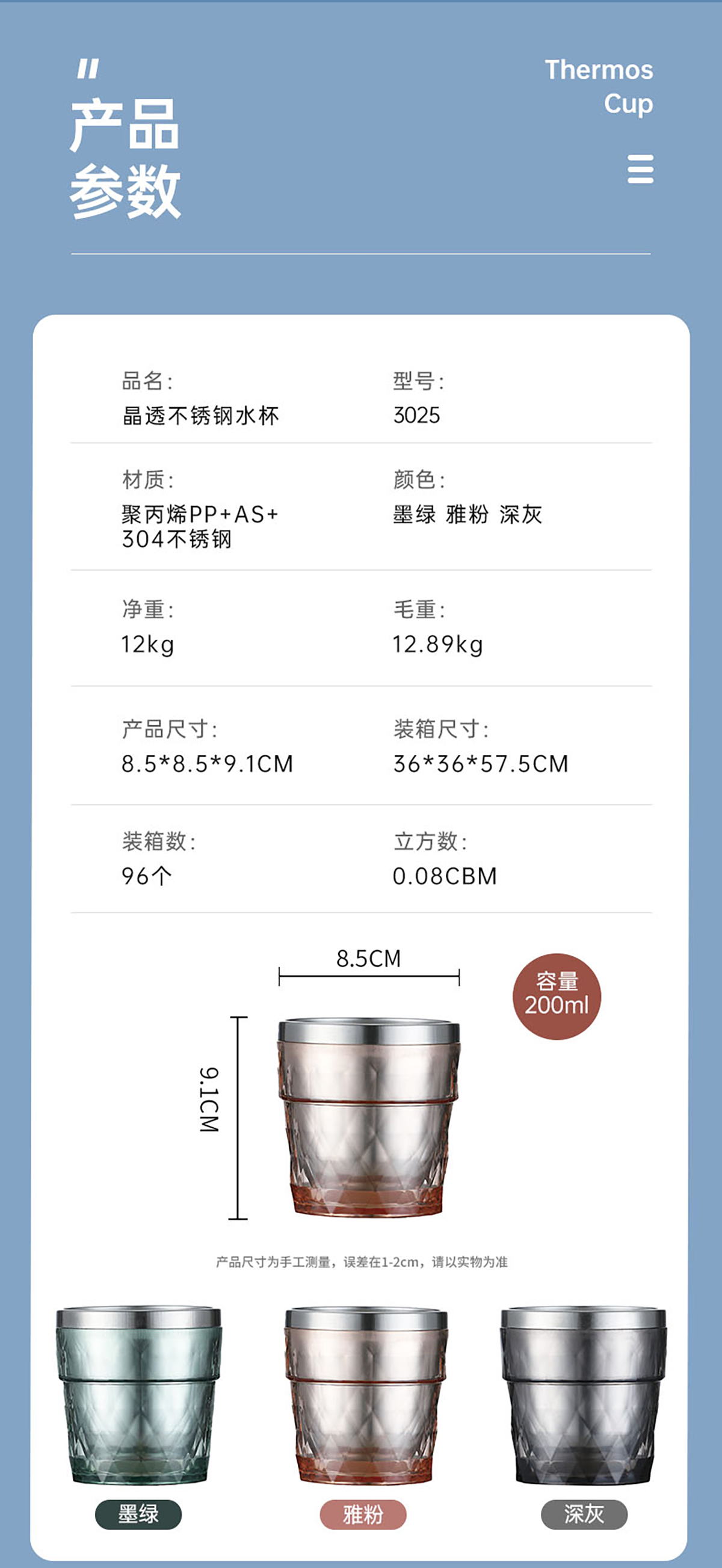 晶透304不銹鋼水杯 250ml