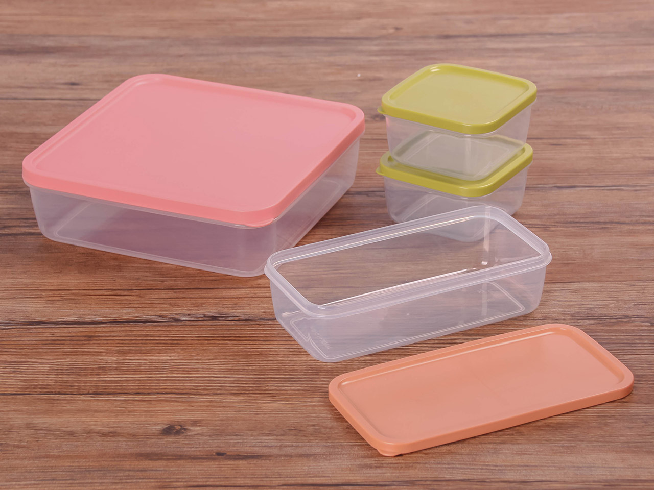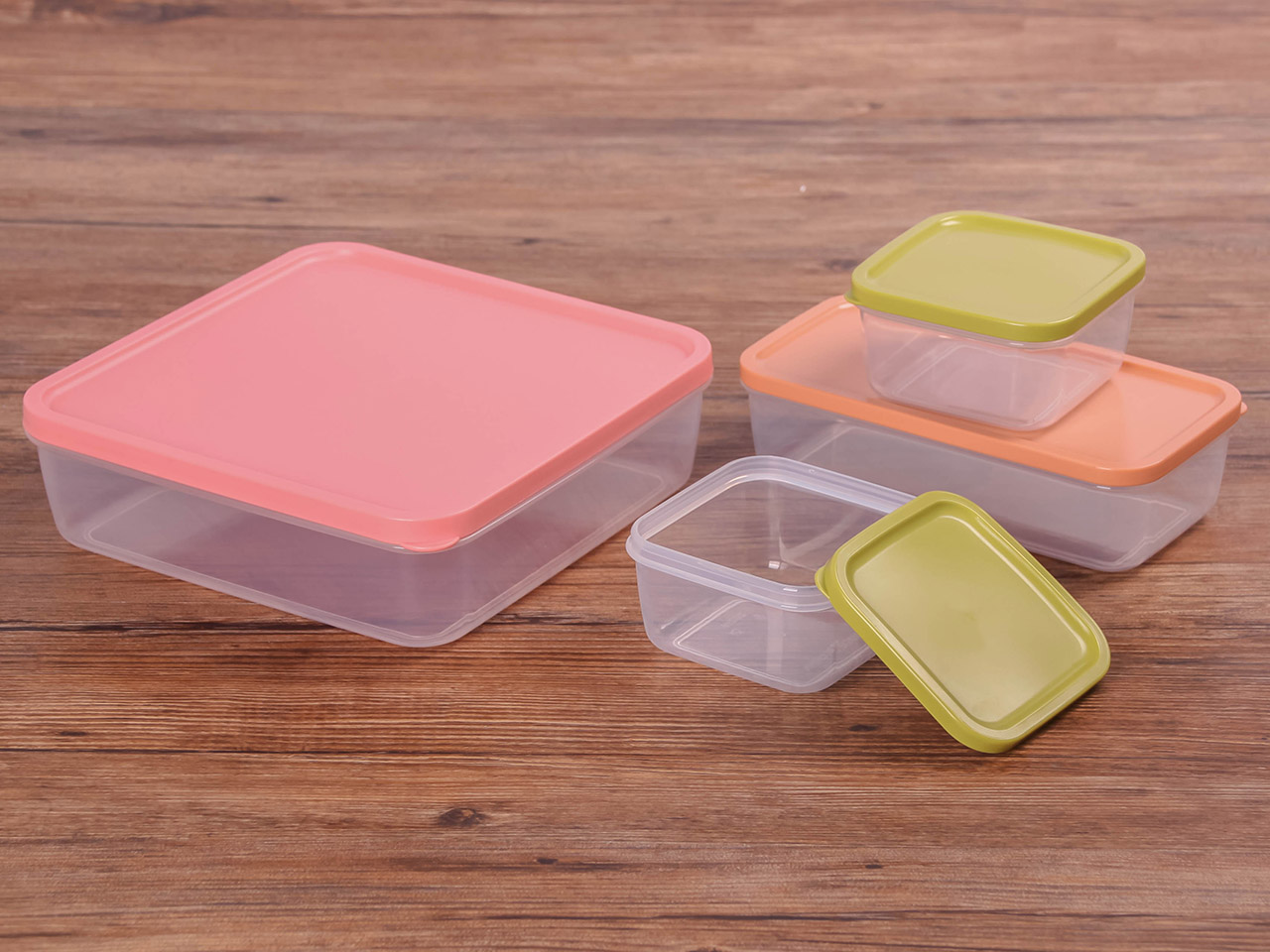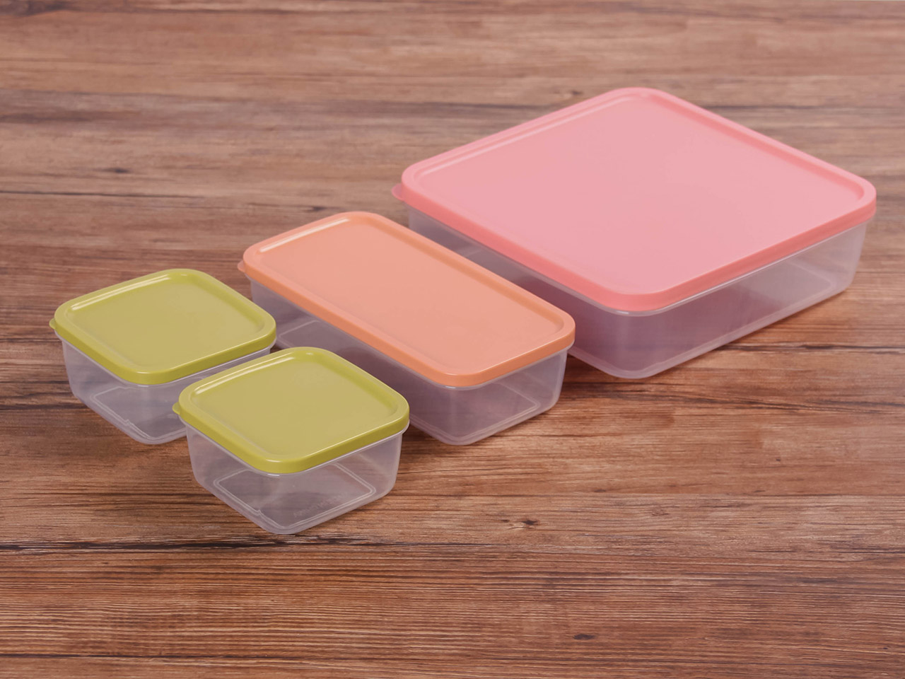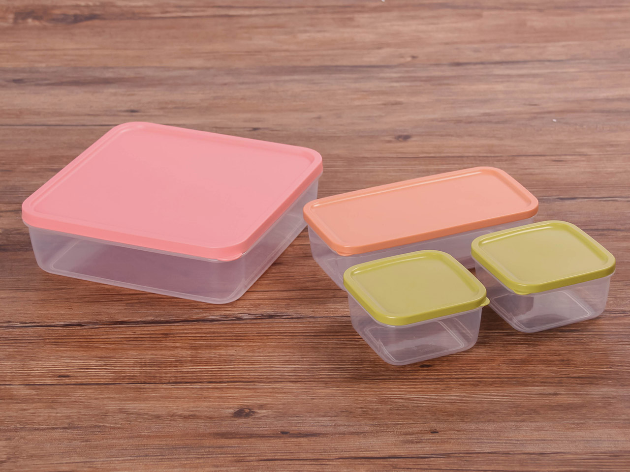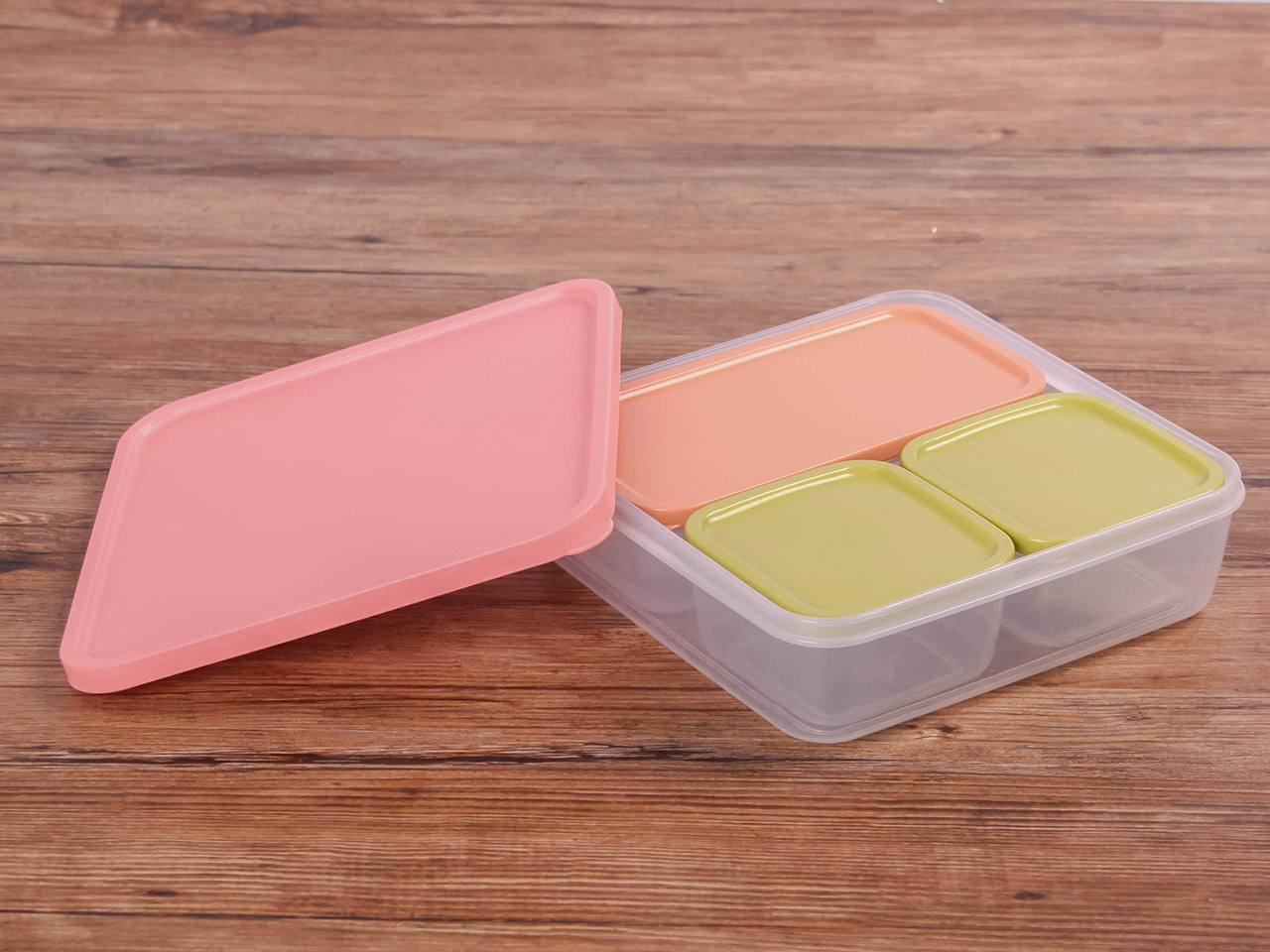 得力熊正方4件套疊疊保鮮盒(混色)