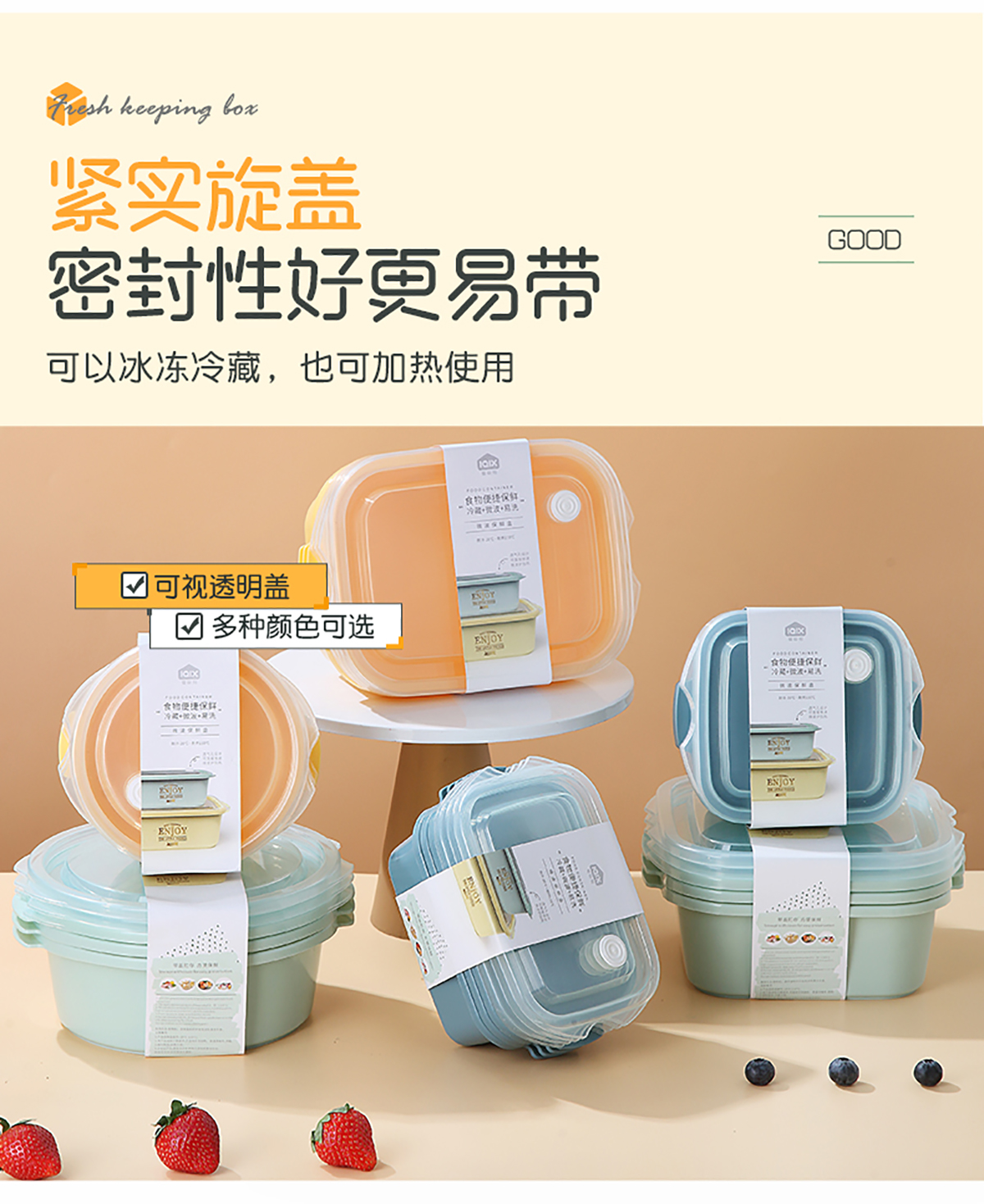 長方形輕便微波保鮮盒(小/大)(4個莊/3個莊)500ml/1300ml 2022新色