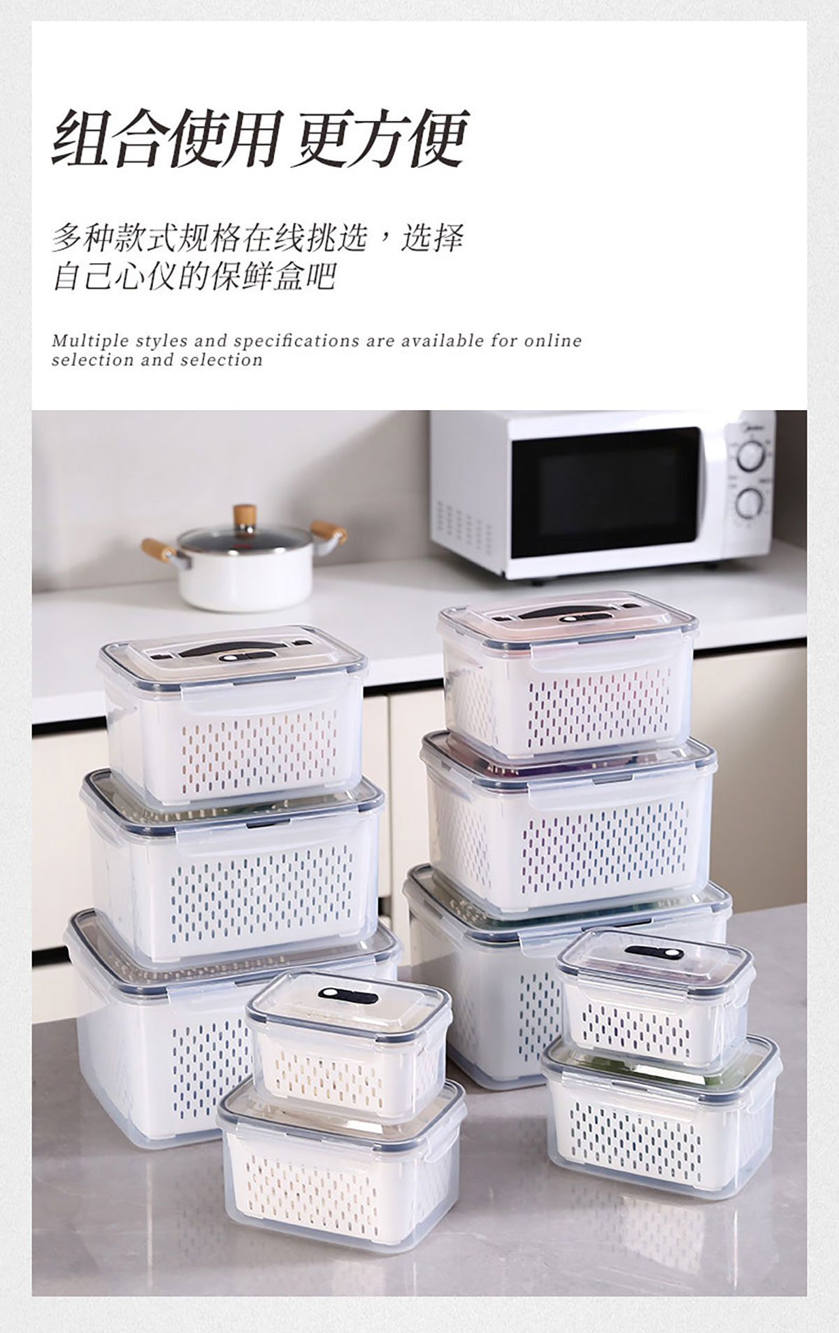 手提密封瀝水保鮮盒(800ml/1.7L/3.15L/4.15L/6.2L/9.4L)
