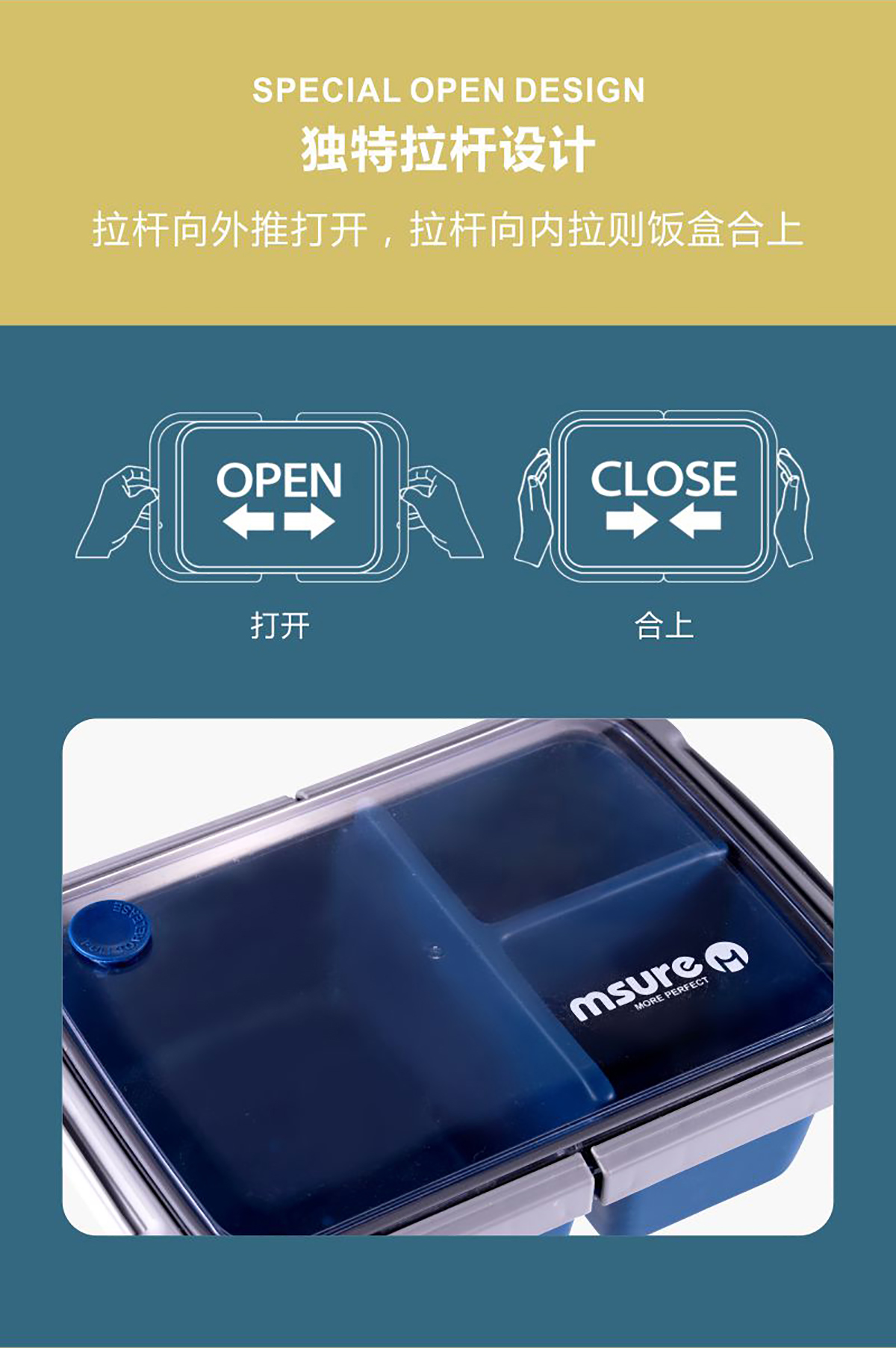 扣拉田園密封飯盒(三格)1.2L