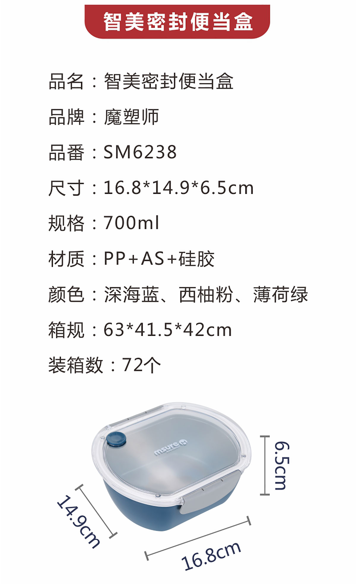 智美密封便當(dāng)盒700ML(20年色款)