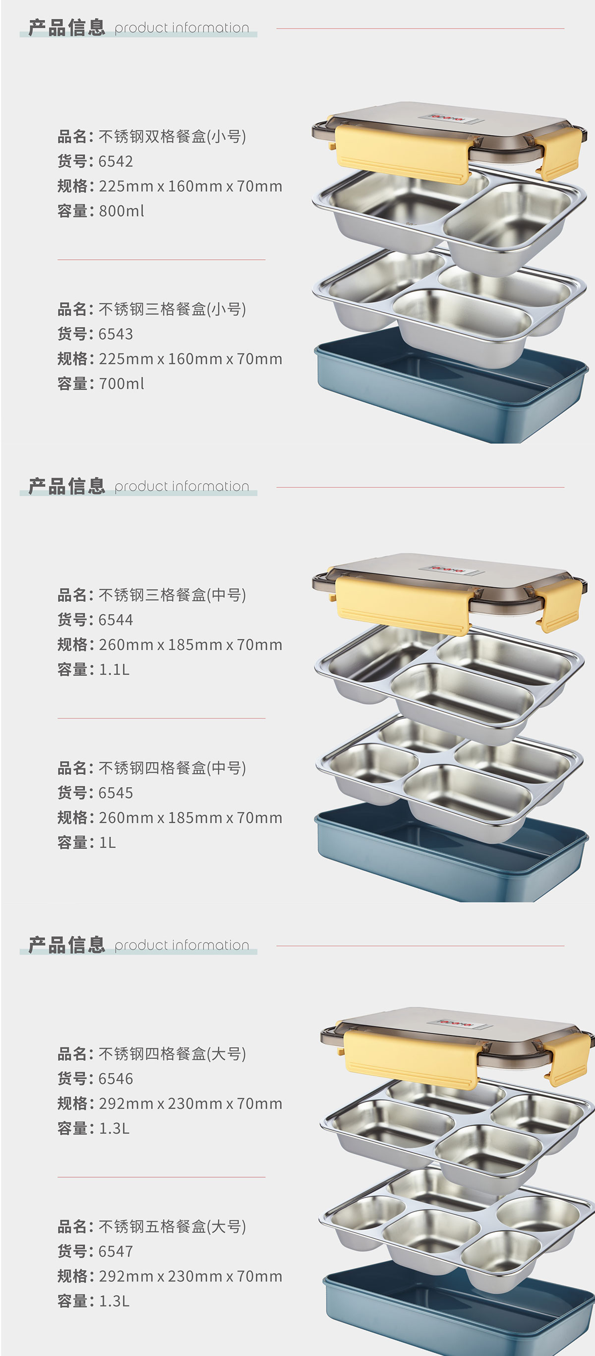 不銹鋼雙格/三格(小號(hào))三格/四格(中號(hào))四格/五格(大號(hào))餐盒(20年色款)