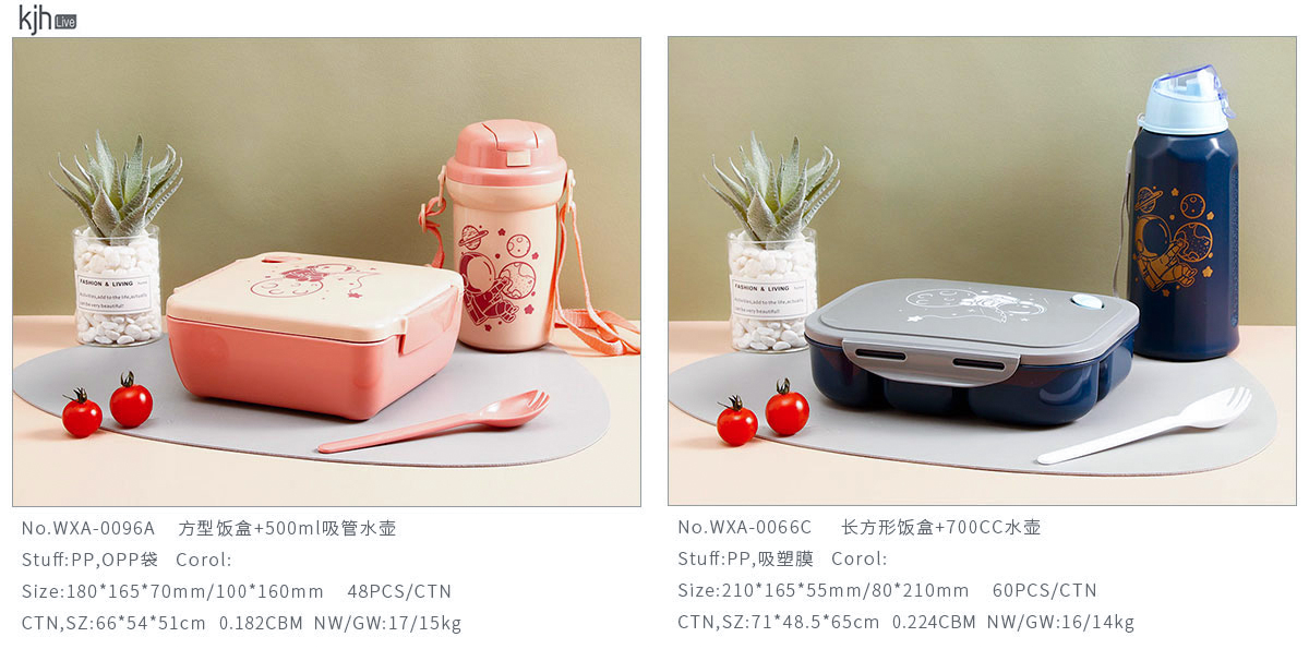 Size: WXA-0096A(方型飯盒+500ml吸管水壺):180*165*70mm/100*160mm