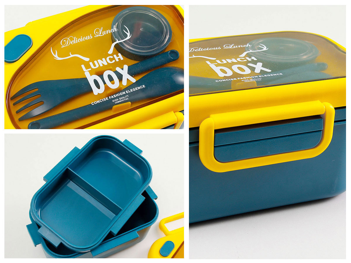 品悅長方雙層密封飯盒(1100ml)(含醬料盒)+圓形/八角隨行杯(500ml)