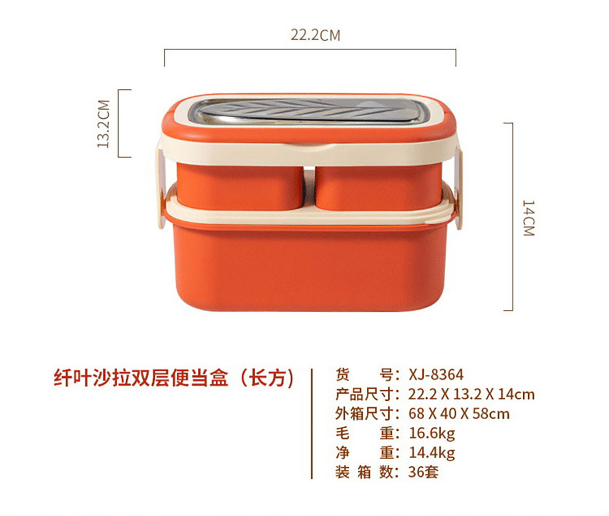 HH-XJ8364(雙層長方形):222*132*140mm/容量:底1320ml+小格280ml*2