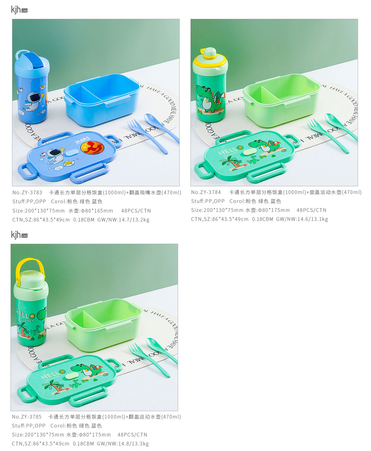 卡通長方單層/單層分格飯盒+翻蓋吸嘴/旋蓋運(yùn)動(dòng)/翻蓋運(yùn)動(dòng)水壺