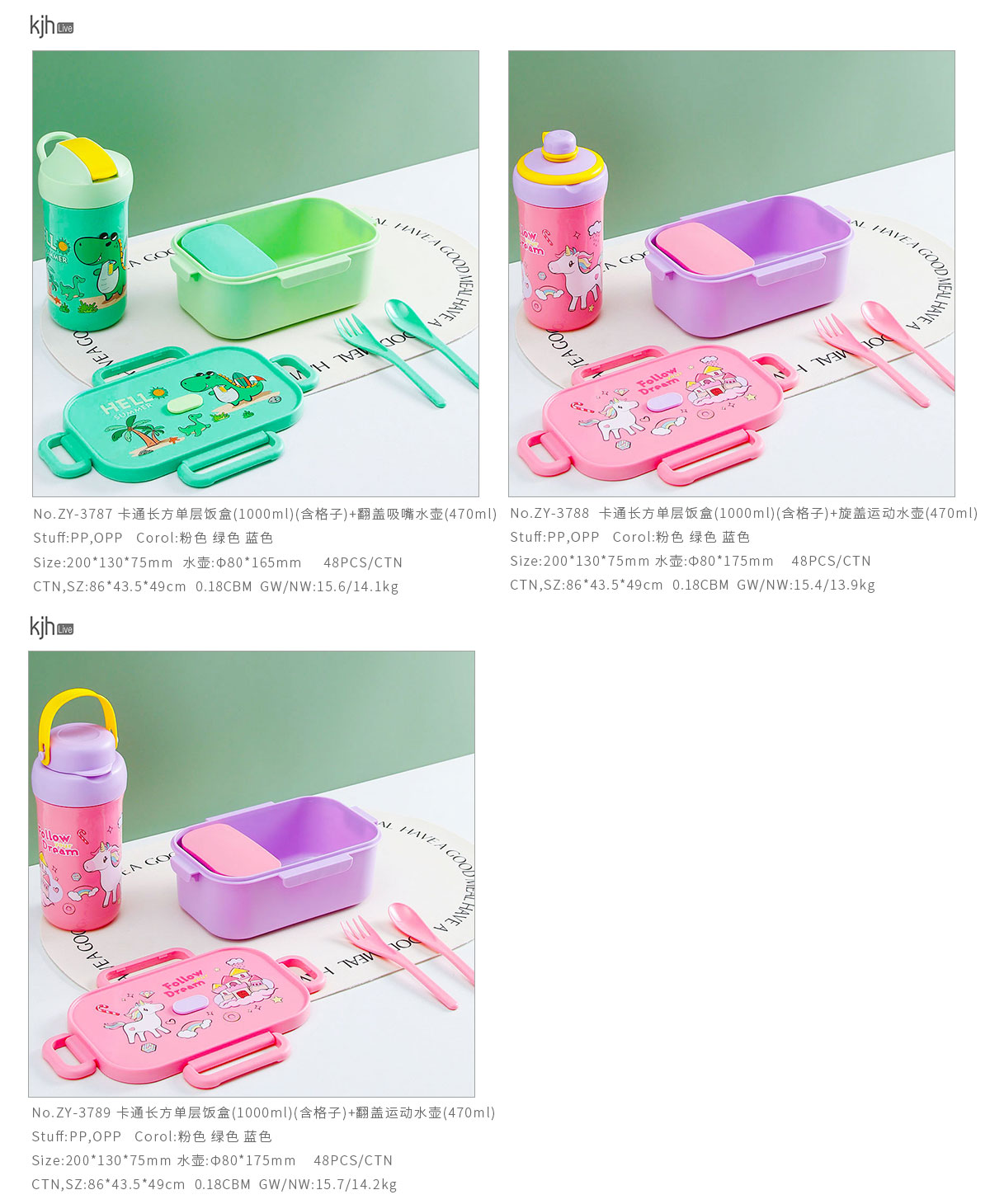 卡通長方單層(含格子)/雙層飯盒+翻蓋吸嘴/旋蓋運(yùn)動/翻蓋運(yùn)動水壺