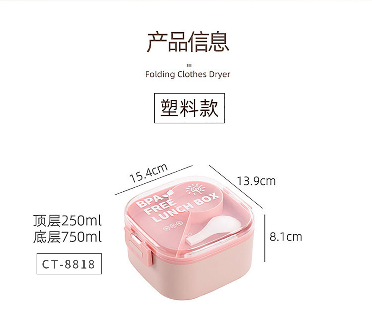 Size: CT-8818(不帶沙拉盒):154*139*81mm/1000ml CT-8819(帶沙拉盒):154*139*81mm/1000ml+65ml