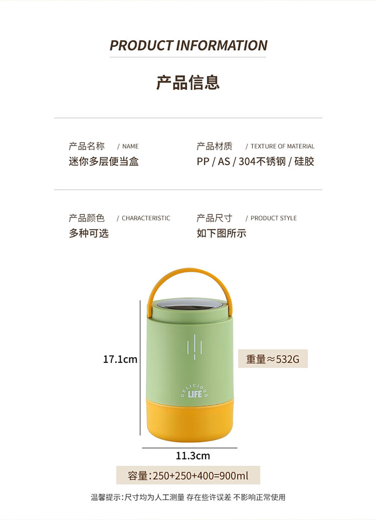 迷你多層便當(dāng)盒250+250+400=900ml