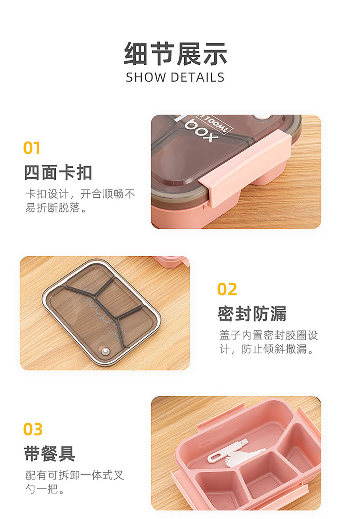 正方形三分格/四分格飯盒