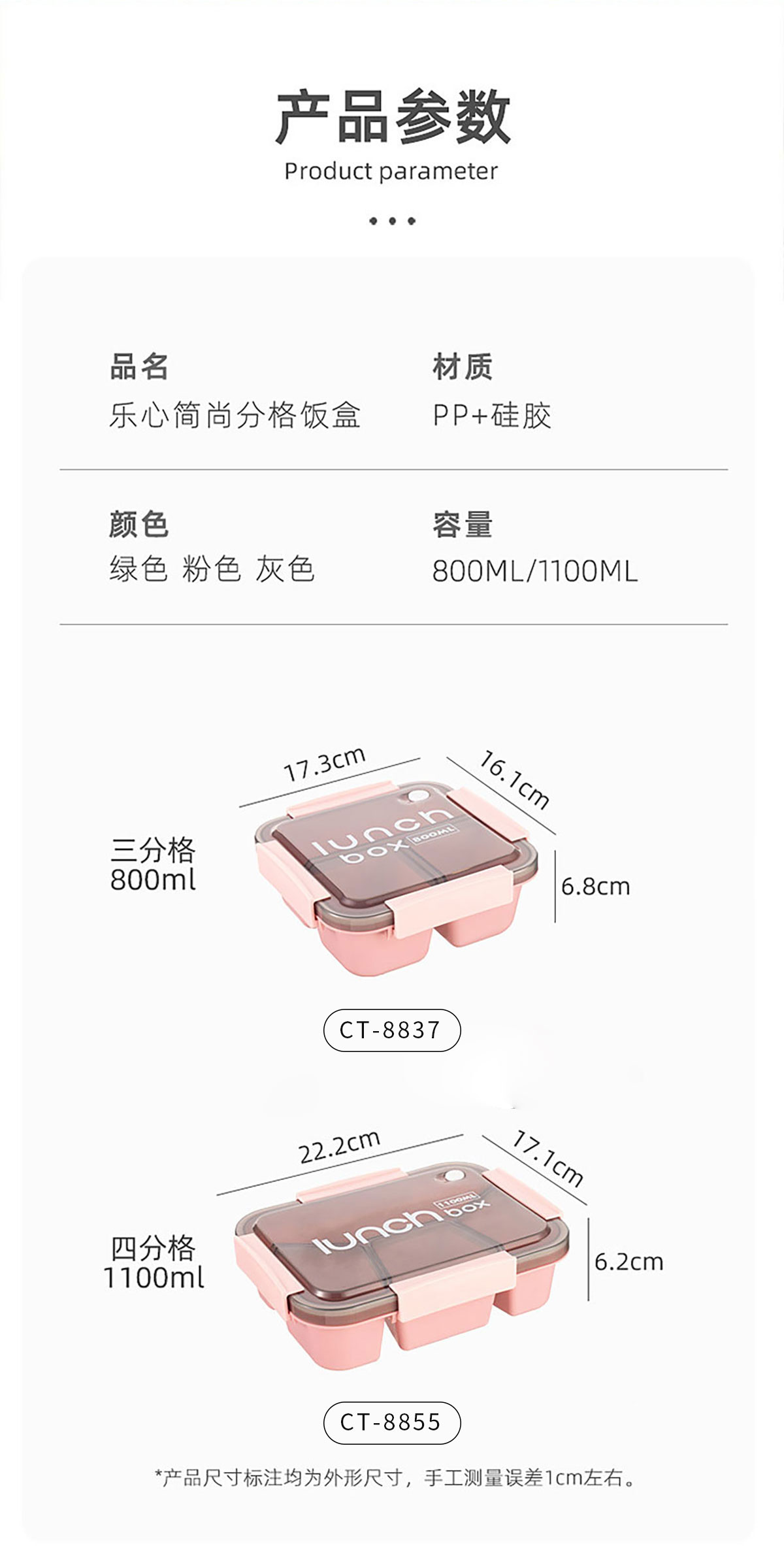 Size: CT-8837(三分格):173*161*68mm