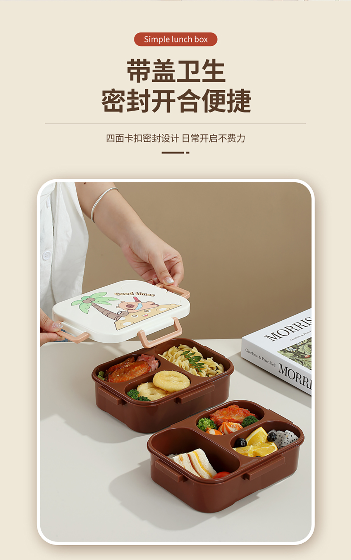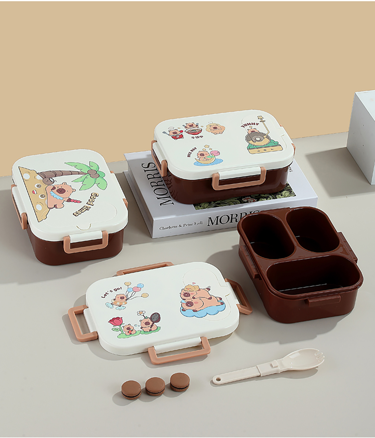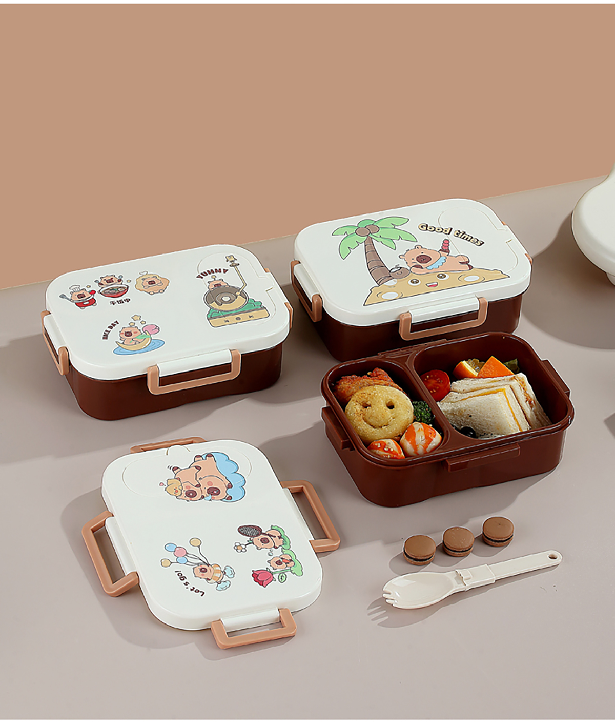 UV獨立密封卡皮家族塑料餐盒2格900ml/3格850ml (配PP折疊湯勺)