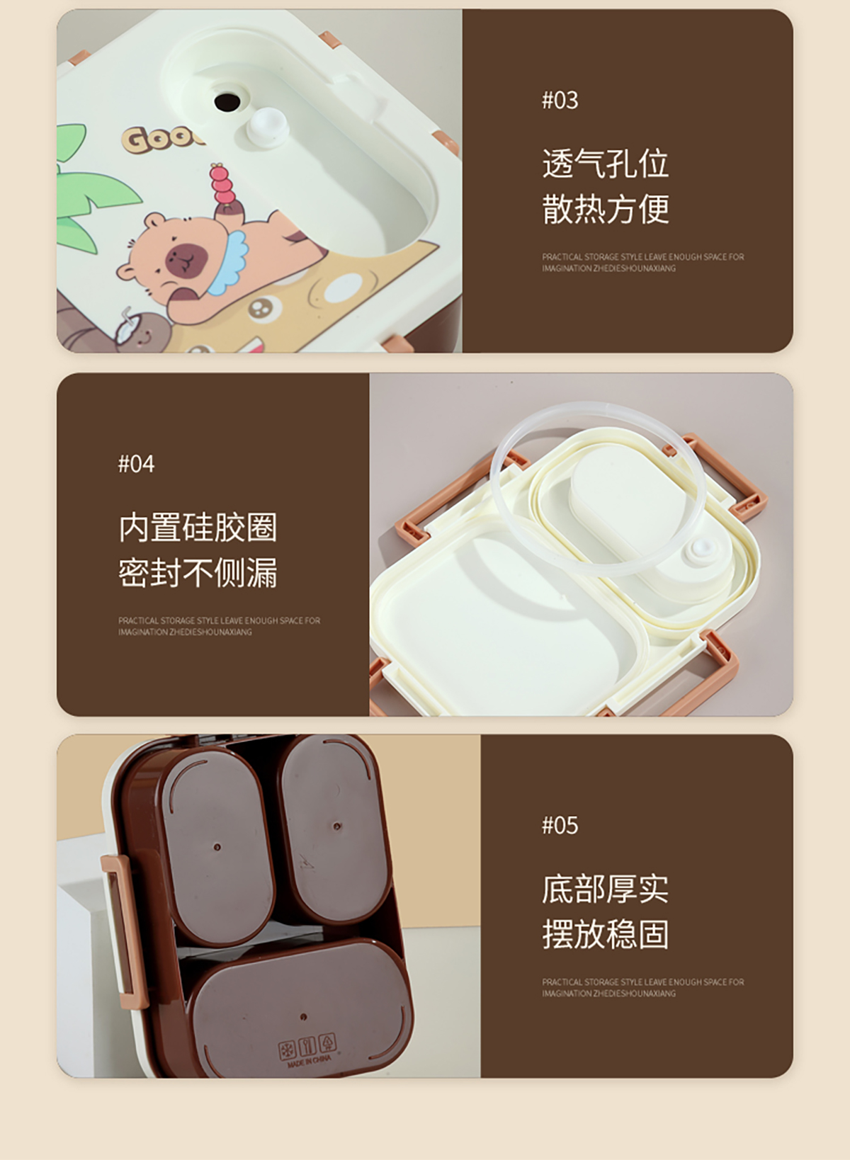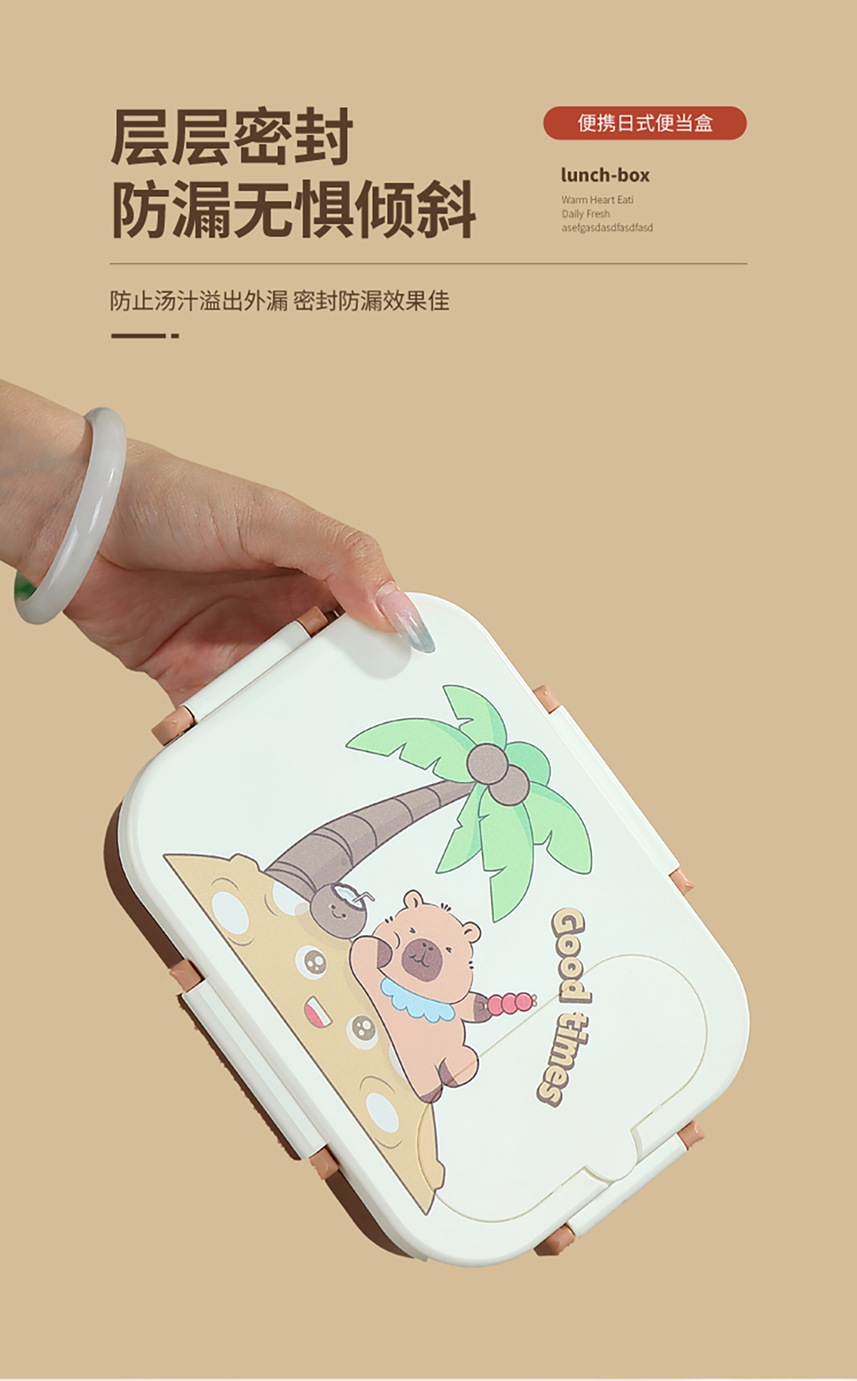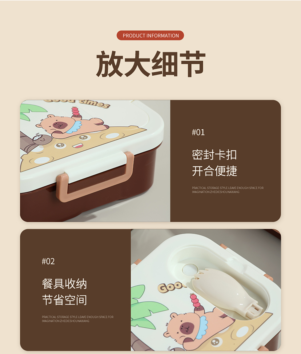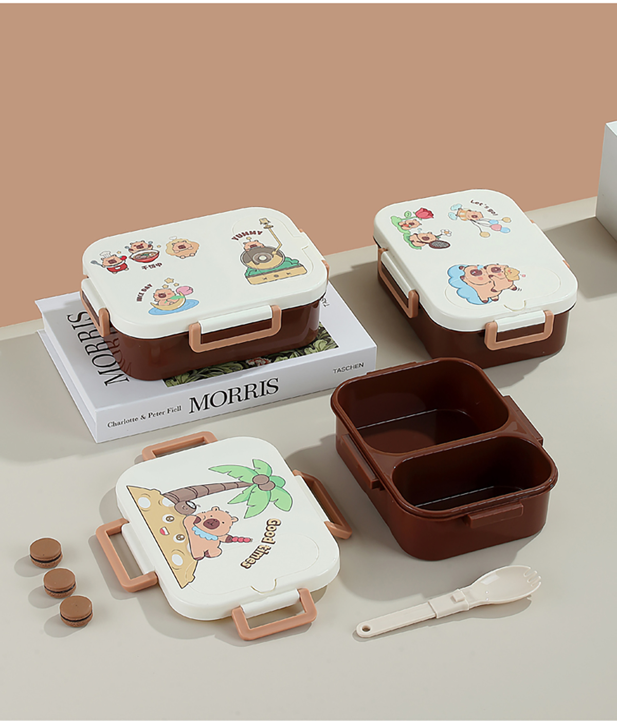 UV獨立密封卡皮家族塑料餐盒2格900ml/3格850ml (配PP折疊湯勺)
