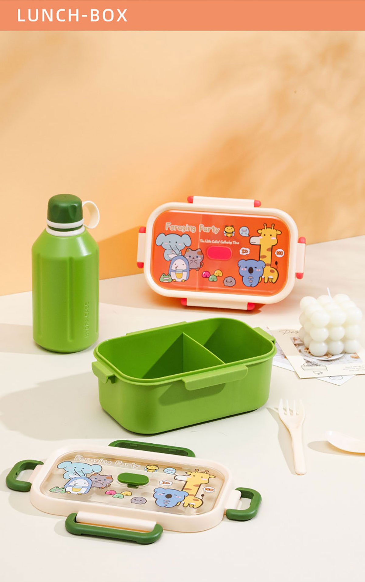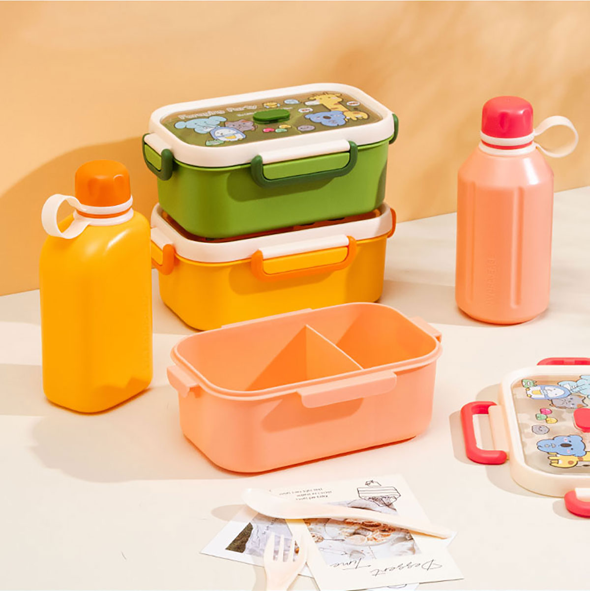 尚趣長方單層分格飯盒(1000ml)/+圓形/方形運(yùn)動水壺(500ml)