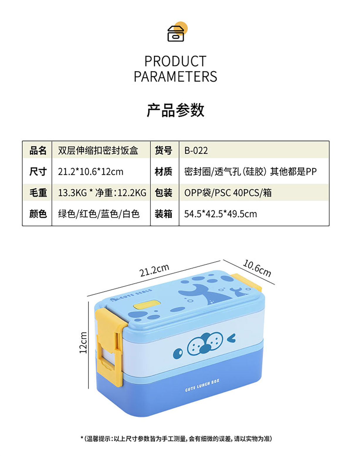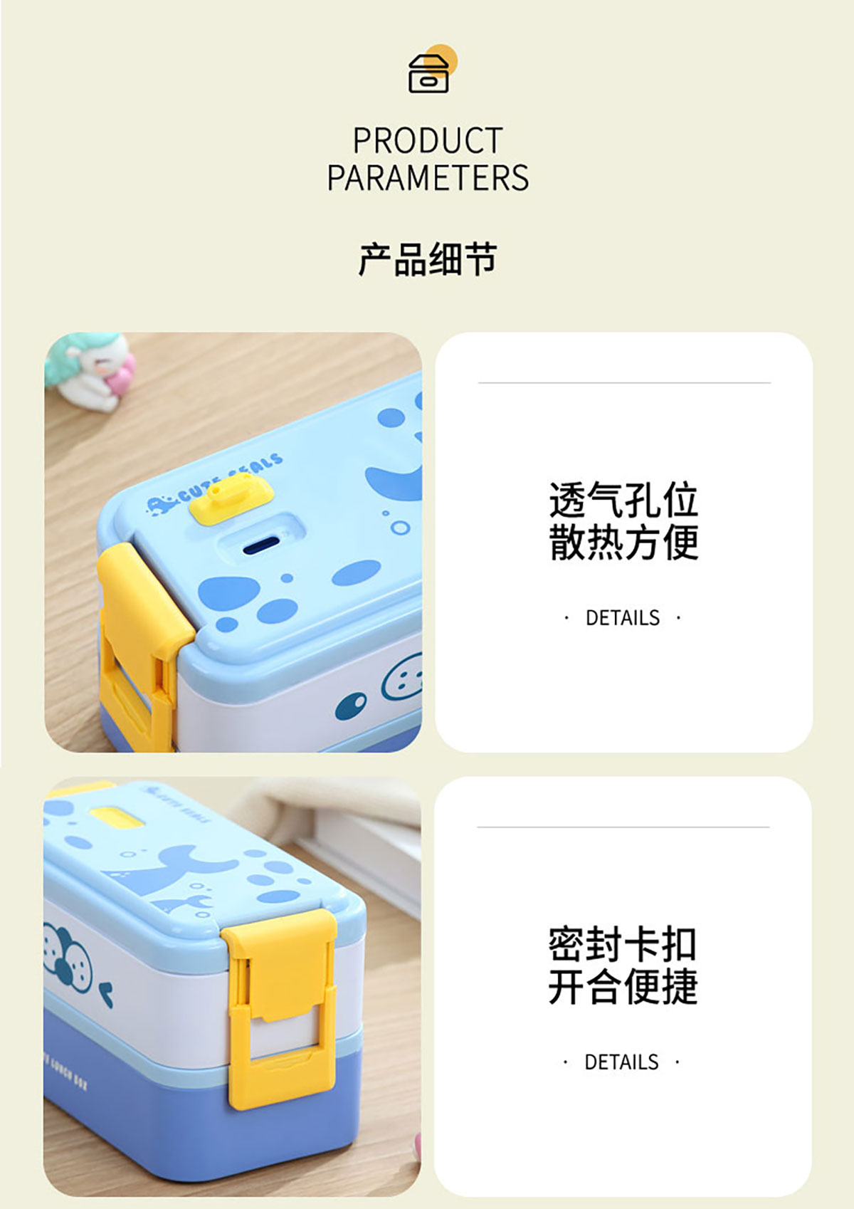 雙層伸縮扣密封飯盒卡通1600ml