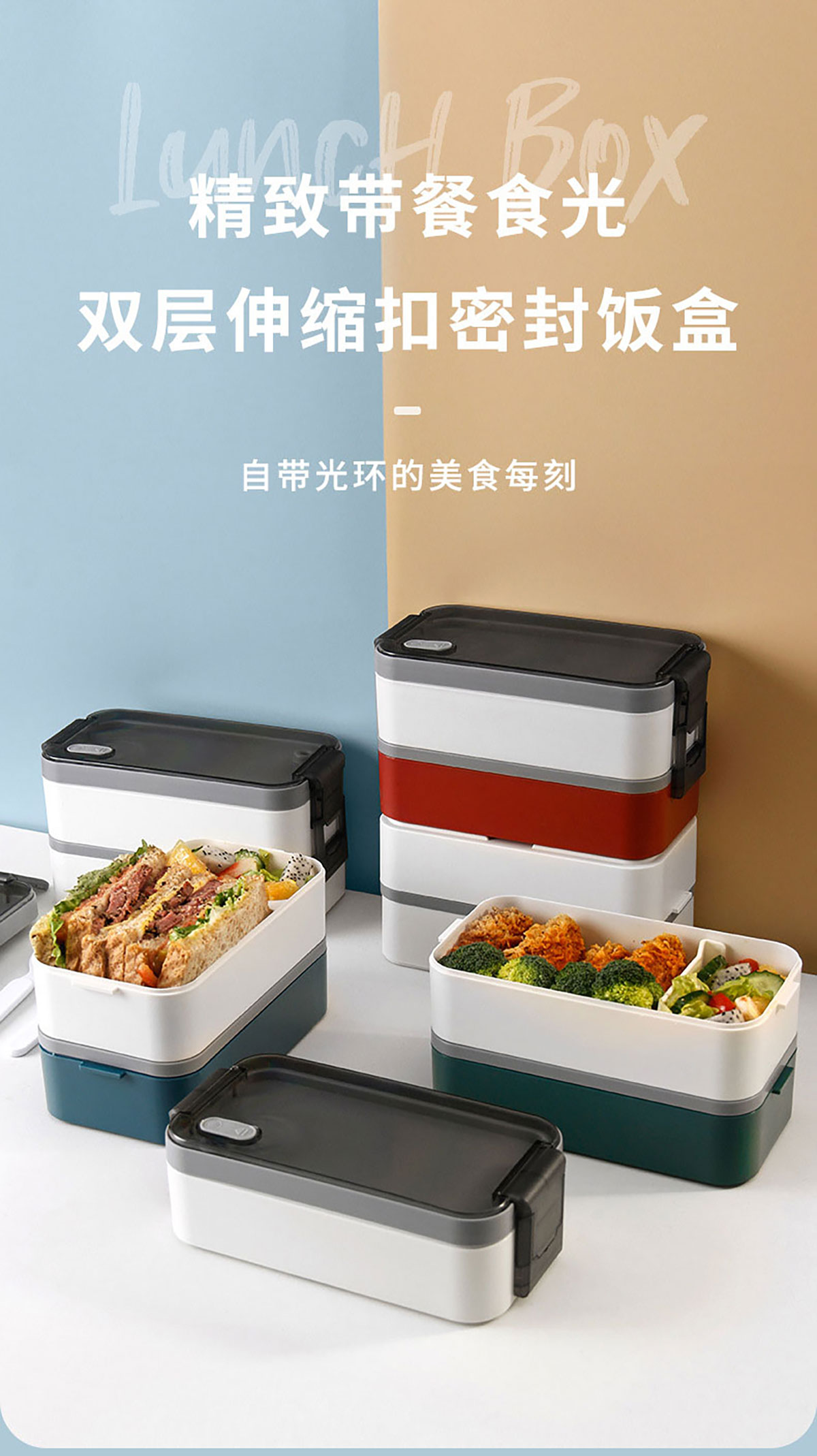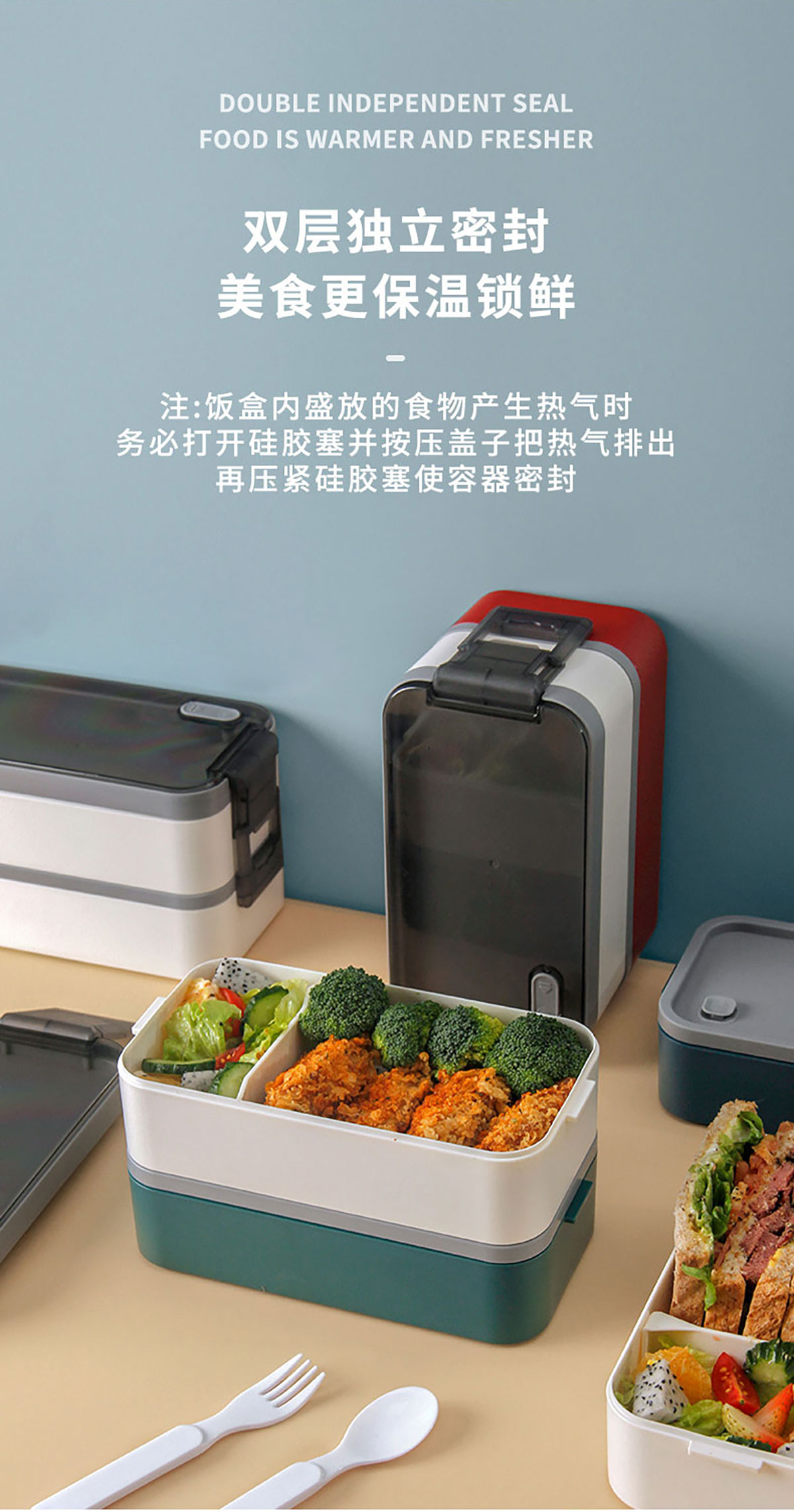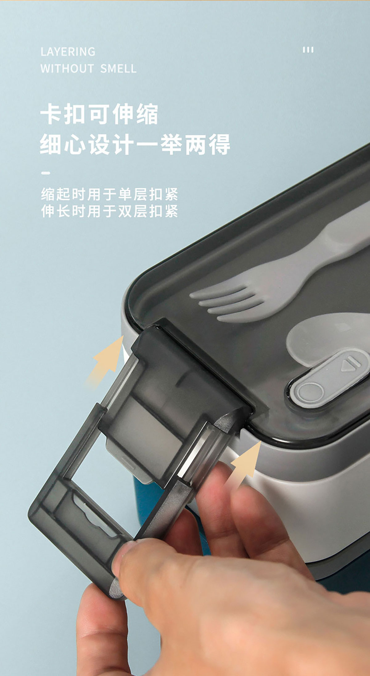 雙層伸縮扣密封飯盒1600ml