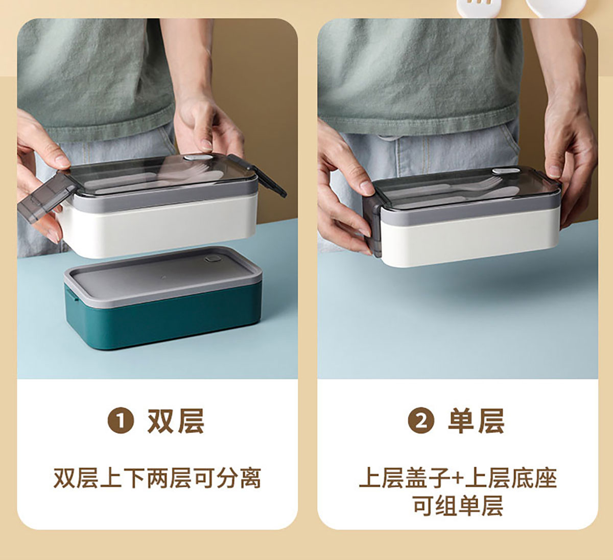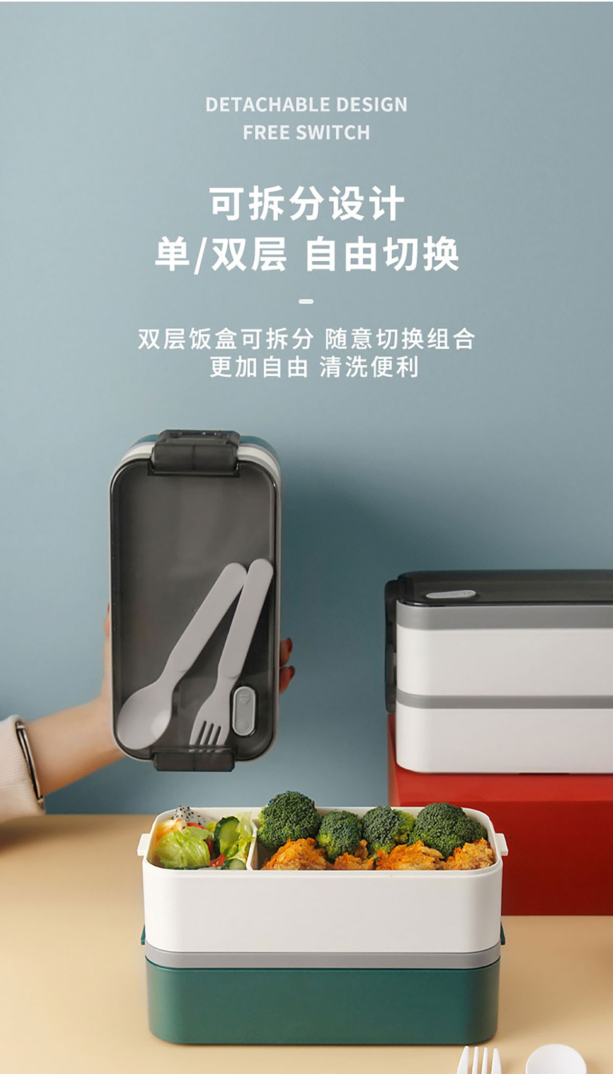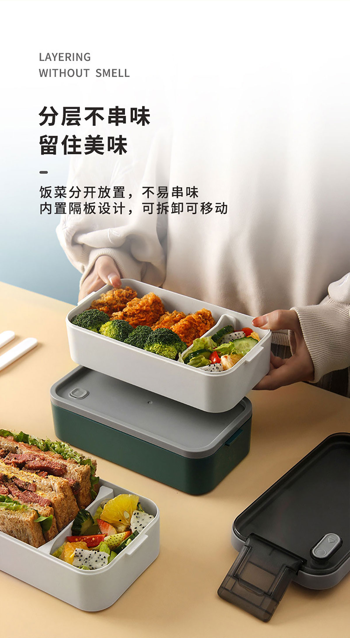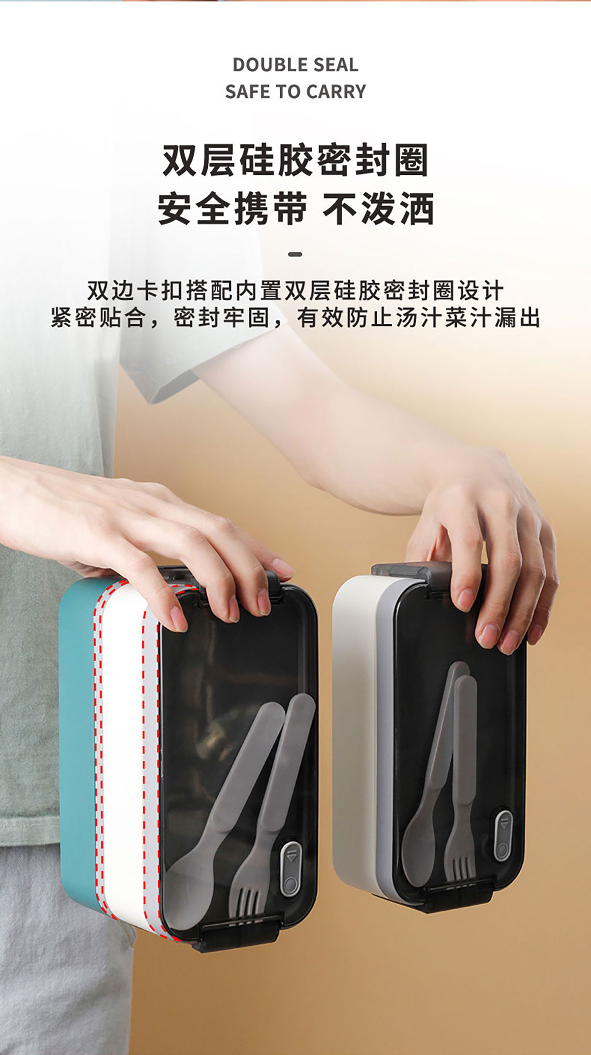 雙層伸縮扣密封飯盒1600ml