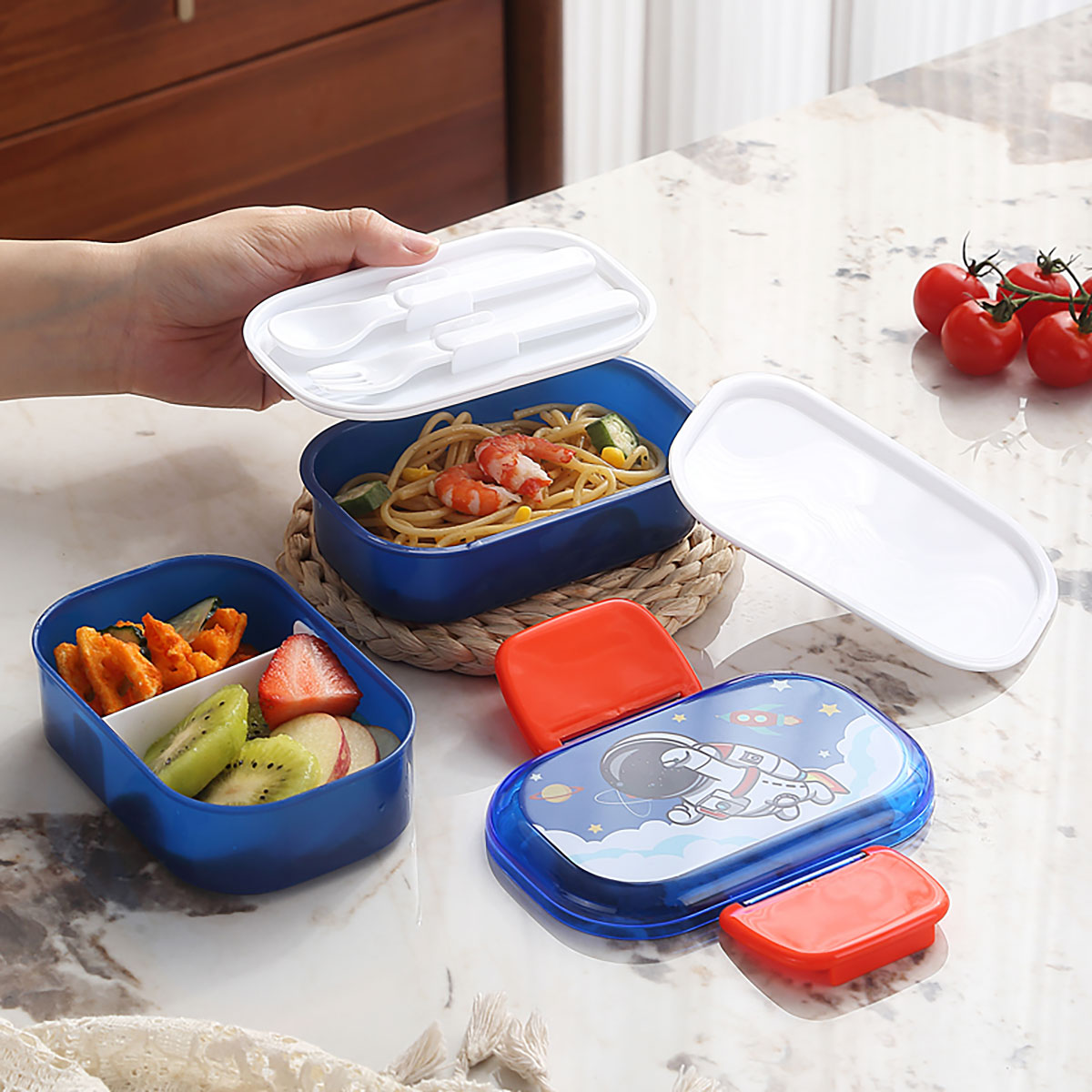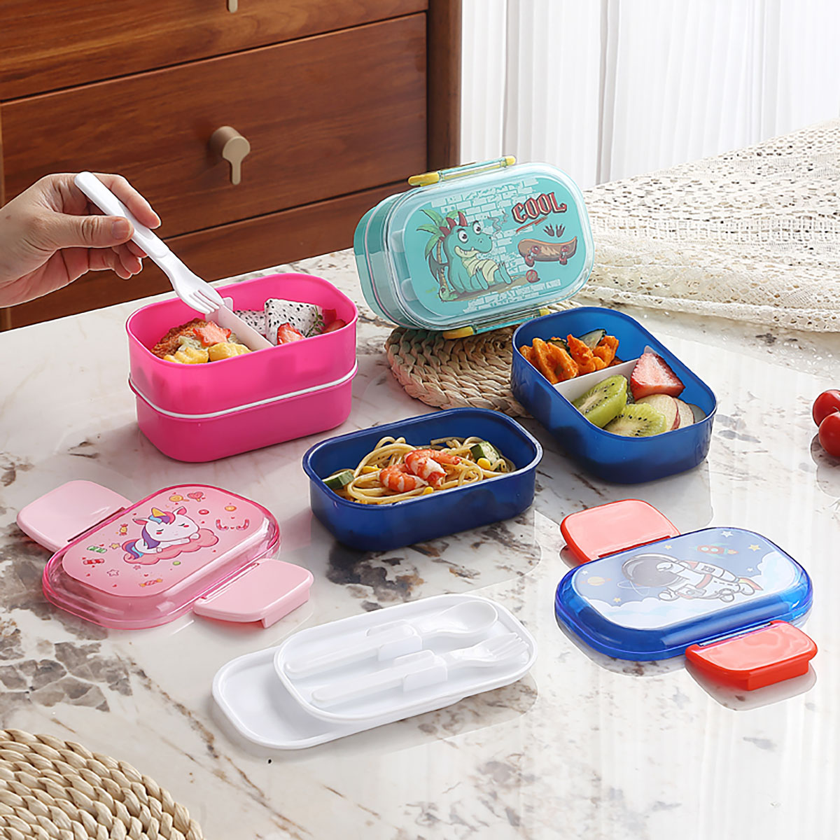 帶叉勺雙層兒童飯盒520ml