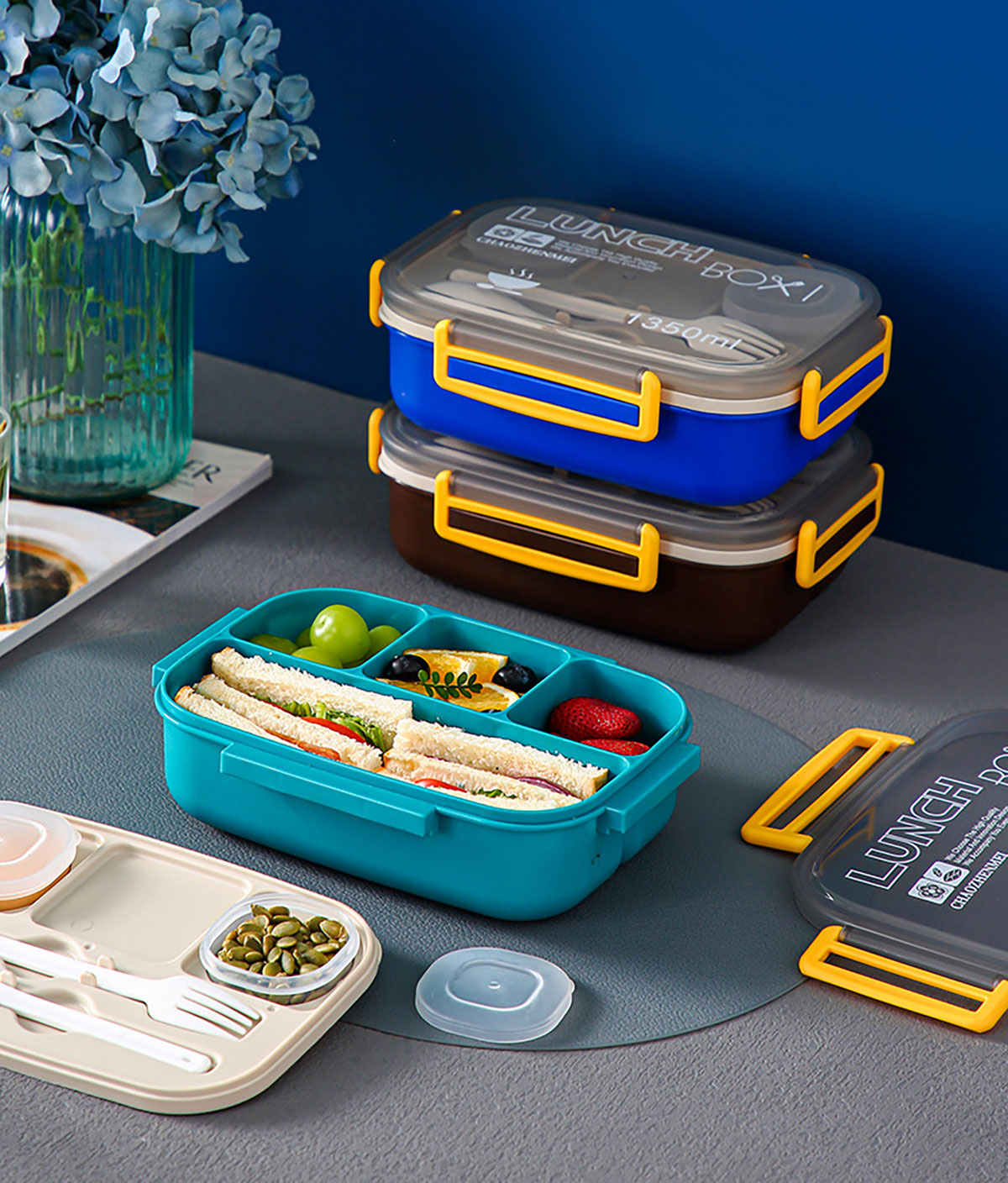 Size: YC-9047(三分格):230*165*80mm/1450ml