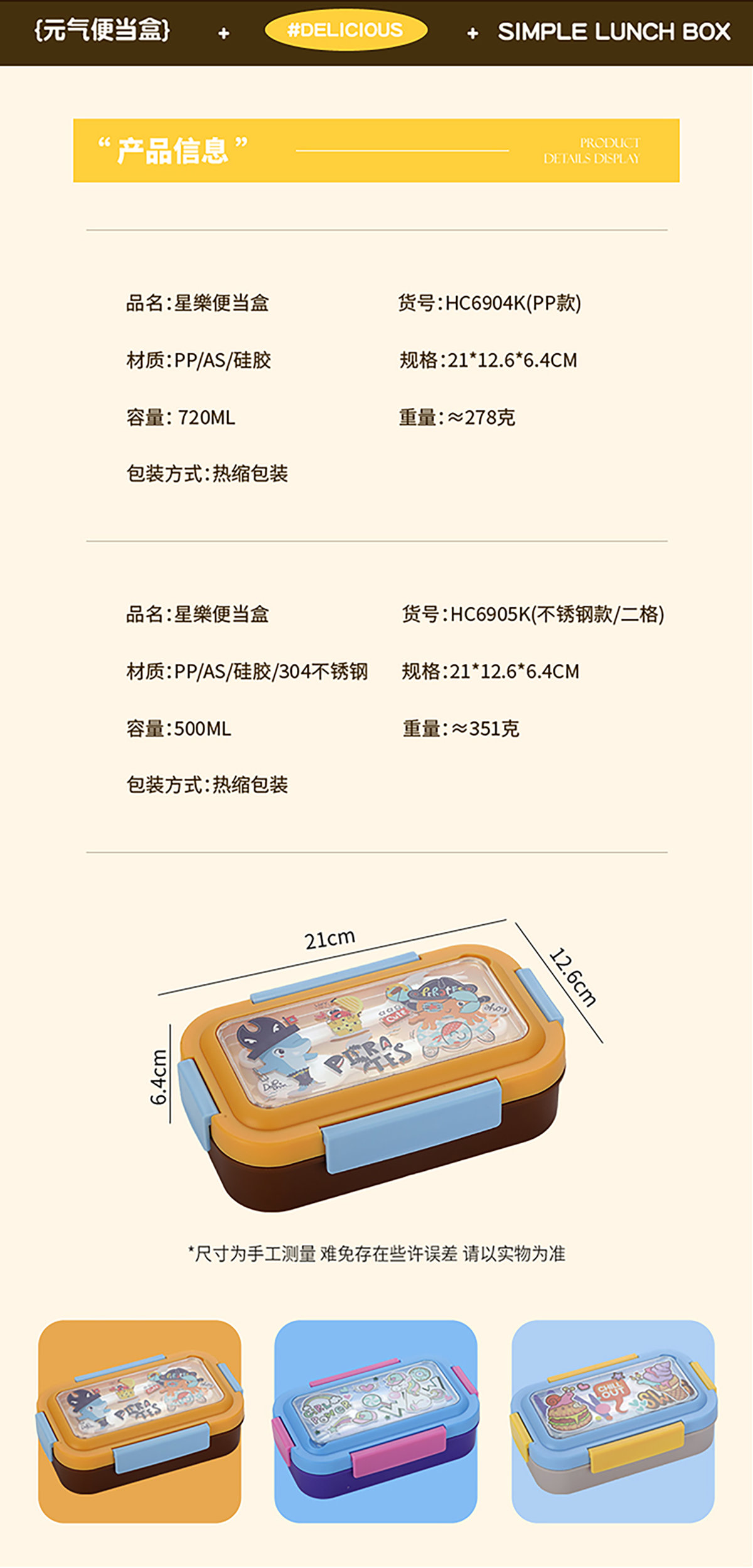 Size: SWY-HC6904K(PP款):210*126*64mm/740ml