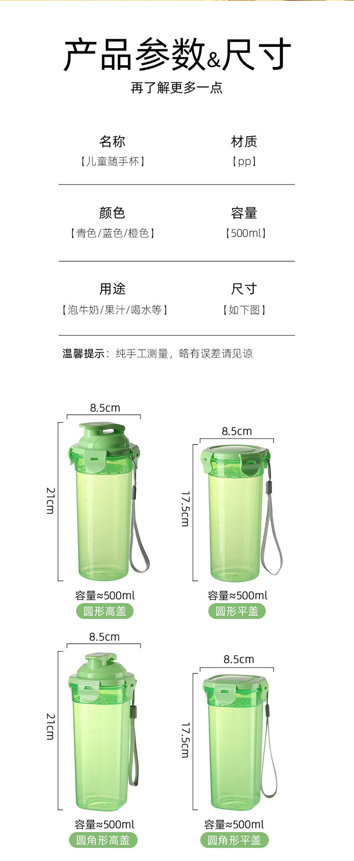 500ml圓形實用水杯(平蓋/高蓋)