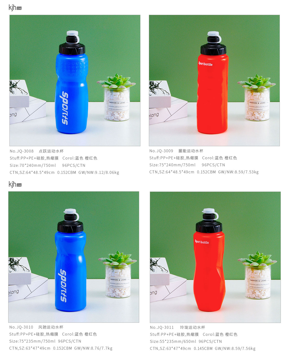 Size: JQ-3008:70*240mm/750ml
