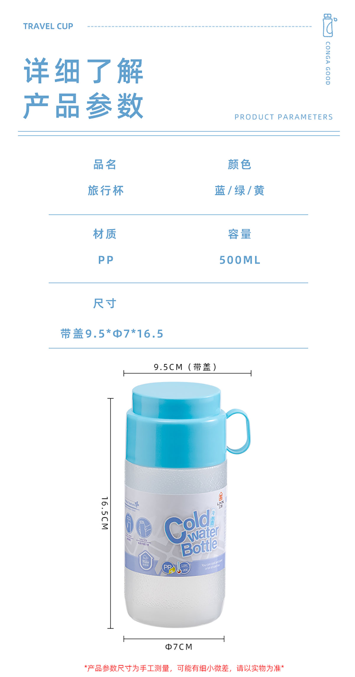 Size: 帶蓋95*?75*165mm/500ml