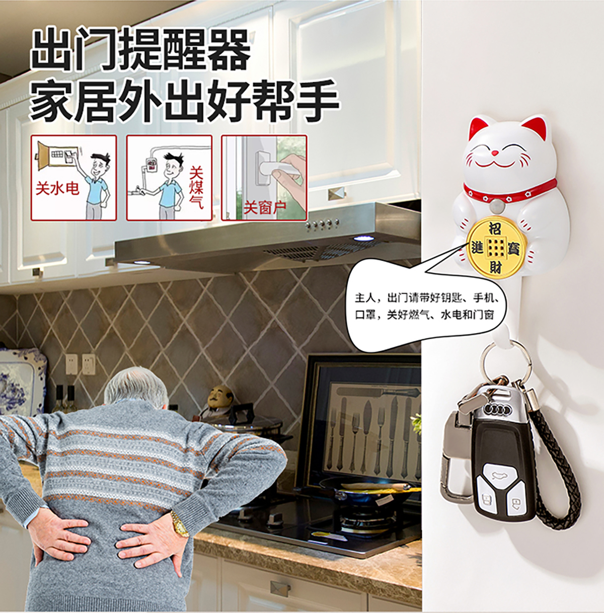招財貓出門提醒器
